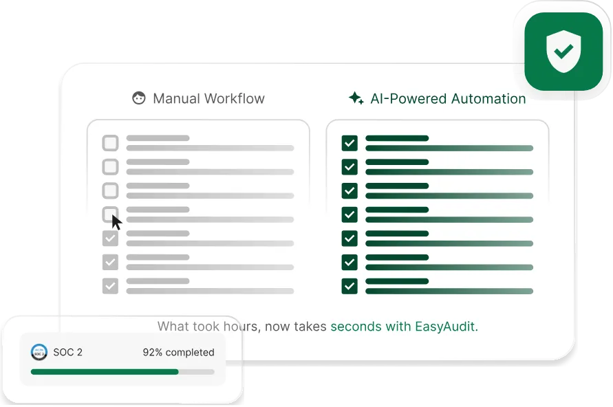 The fastest way to meet security frameworks - SOC 2, ISO 27001, and more. Schedule a demo to see how EasyAudit can transform your compliance journey.